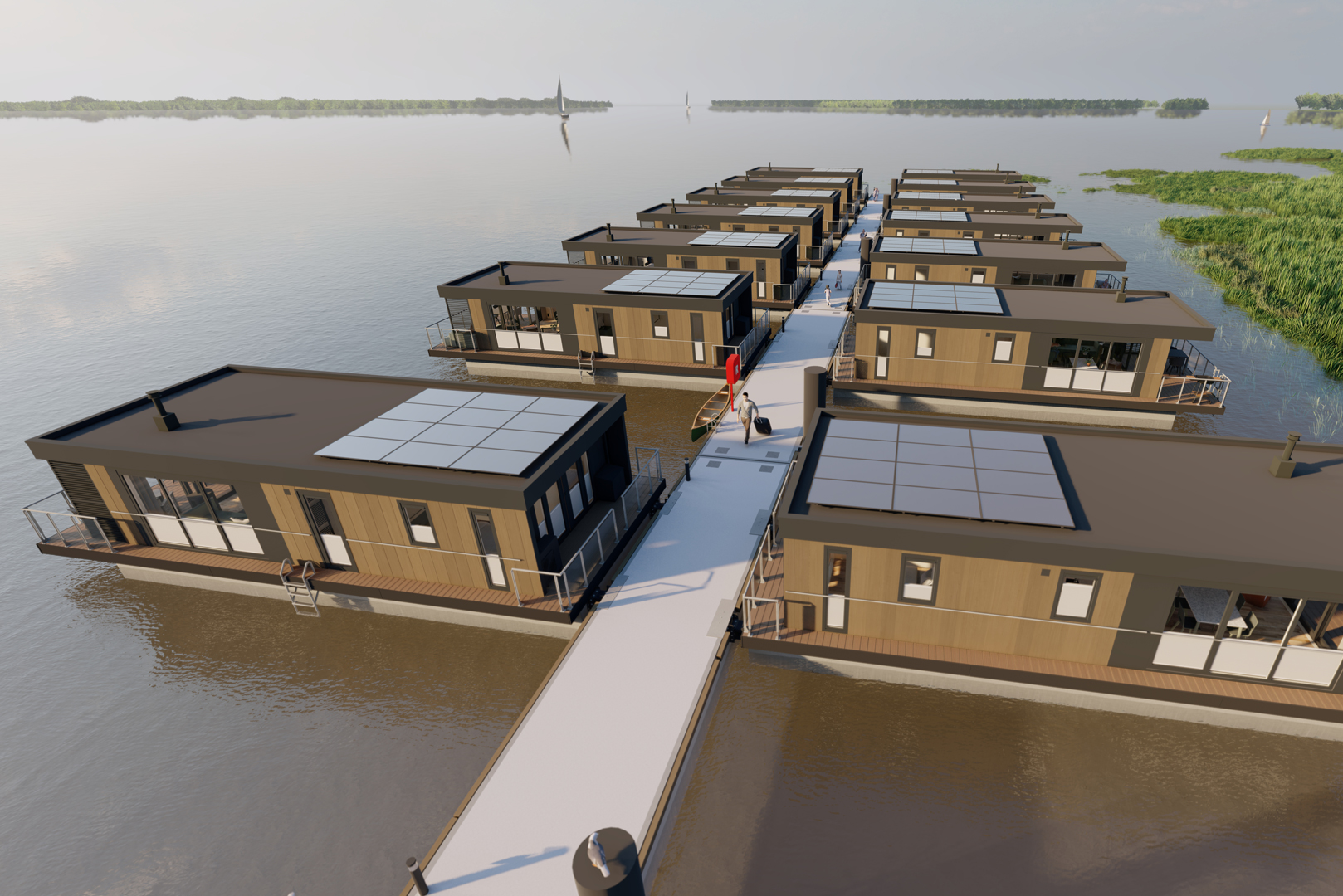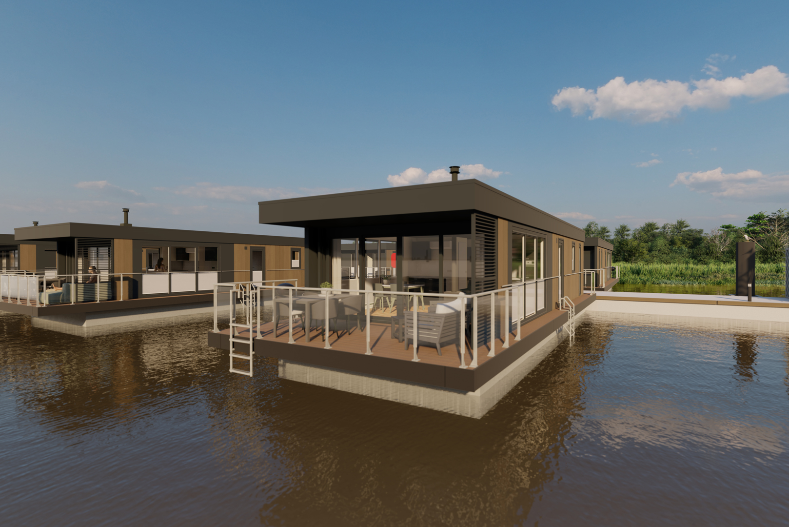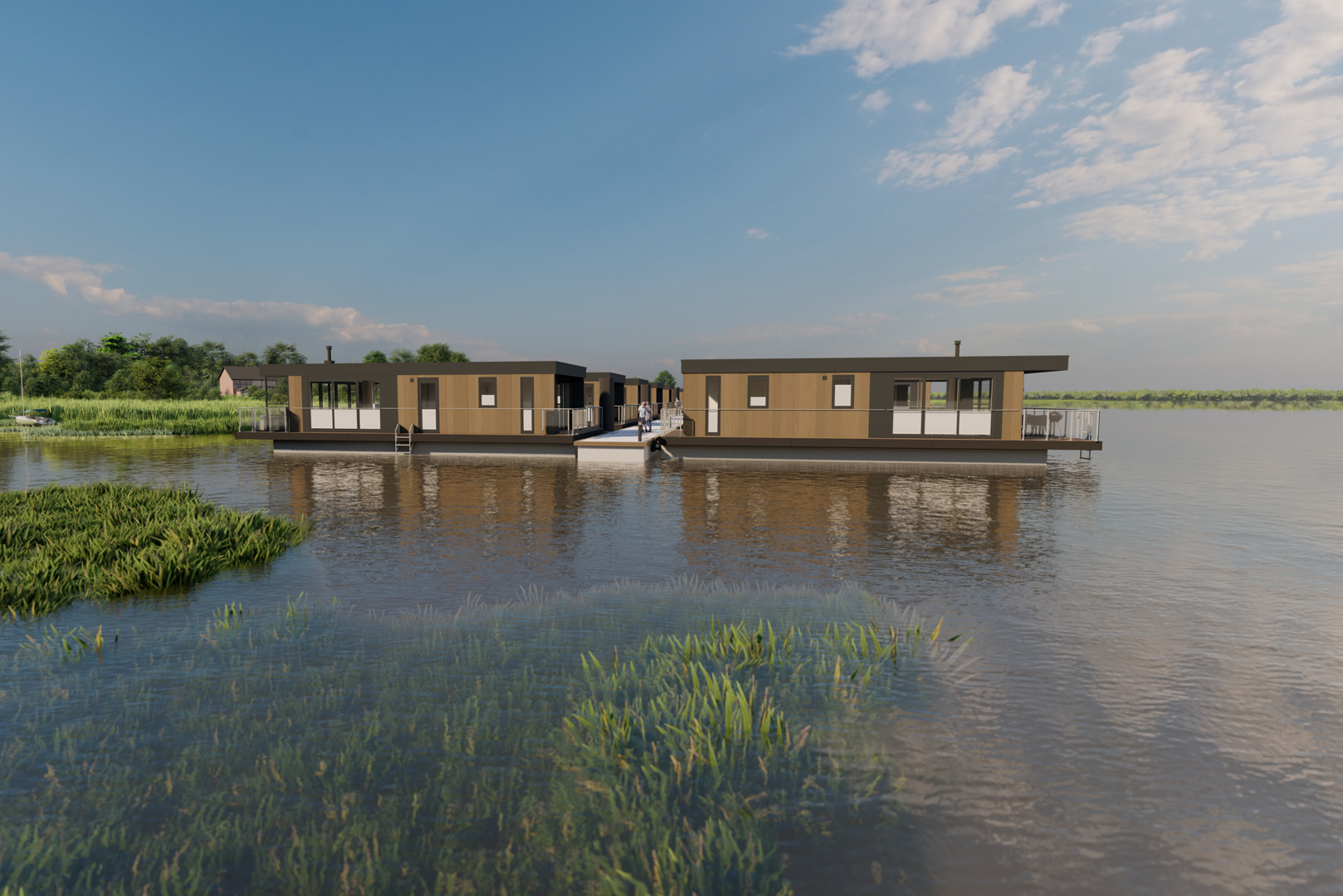Ihr neues Zuhause am Wasser Unsere modernen Ferienhäuser sind hochwertig ausgestattet und flexibel nutzbar – perfekt für Wochenendausflüge, längere Urlaube oder als renditestarke Investition. Die Lage direkt am Wasser macht sie zum idealen Ort, um dem Alltag zu entfliehen und die Seele baumeln zu lassen. Ob für Familien, Paare oder Freunde – die Häuser bieten höchsten Komfort und Designqualität.